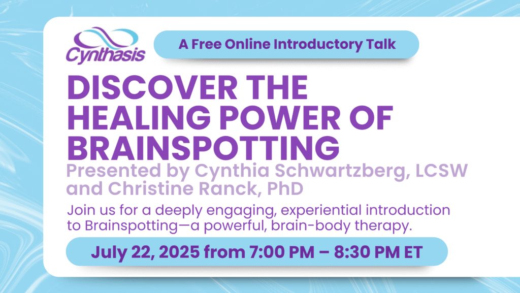 Discover the Healing Power of Brainspotting A Free Introductory Talk with Cynthia Schwartzberg, LCSW, and Christine Ranck, PhD Join us for a deeply engaging, experiential introduction to Brainspotting—a powerful, brain-body […]